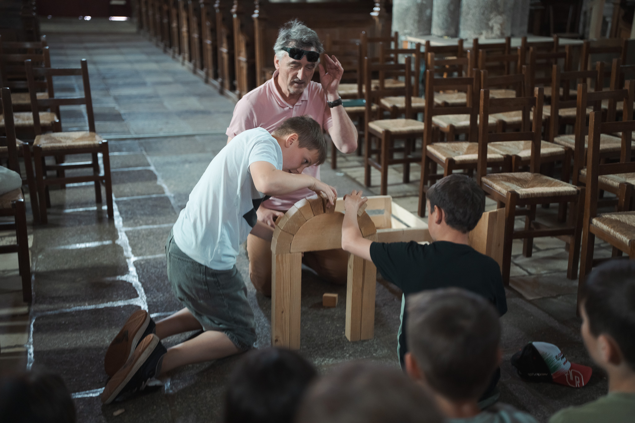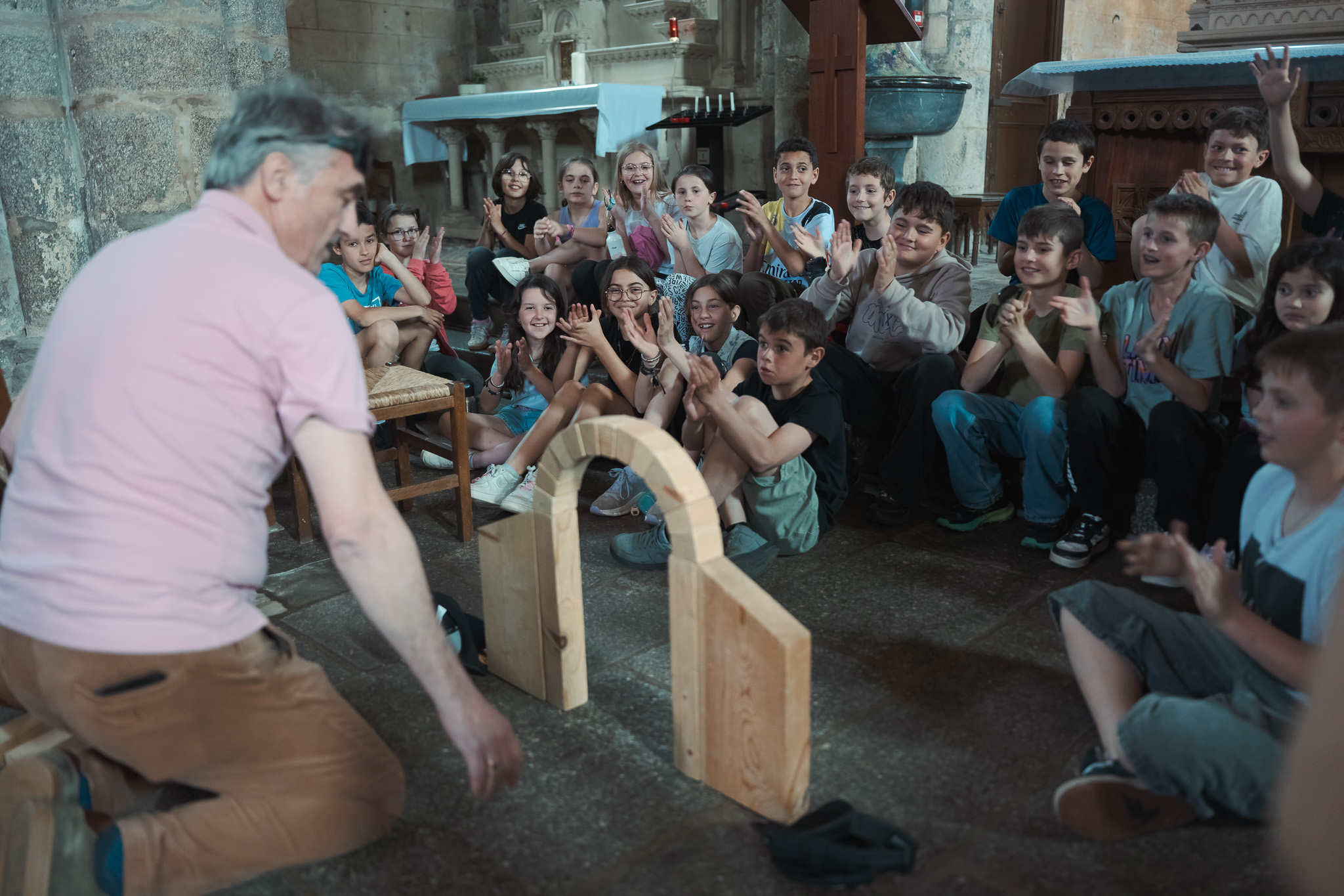 Au cours d’une heure et demi de parcours, les enfants voyagent dans le temps. En partant de l’ancien Palais de Justice (l’actuelle médiathèque de Moutiers), le petit groupe passe par l’église pour comprendre l’évolution architecturale du patrimoine. Thierry Pain leur réserve une petite surprise. Après la théorie, les enfants passent à la pratique avec une reconstitution miniature d’une voute de type roman. Peu à peu les enfants se rapprochent de notre époque, après le 12eme siècle, ils s’arrêtent sous Les Halles, lieu emblématique de Moutiers et de son histoire. Par la suite, les enfants font une halte au Champ de Foire afin d’en apprendre plus sur cette ancienne place centrale dans le commerce de bêtes. La visite se termine à l’ancien lavoir qui permet de découvrir un lieu qui fonctionnait encore au début du siècle dernier.