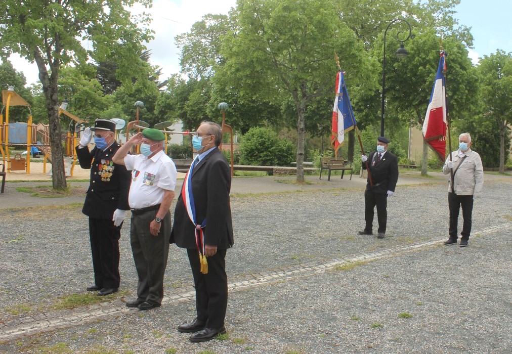 Deux gerbes ont été déposées, l’une à la statue du Lieutenant Colonel De Sairigné, la deuxième au monument aux morts suivie de la sonnerie aux morts. M. Le Maire s’est exprimé en rappelant que le 8 mai les français commémorent la fin des combats en Europe contre l’Allemagne nazie.