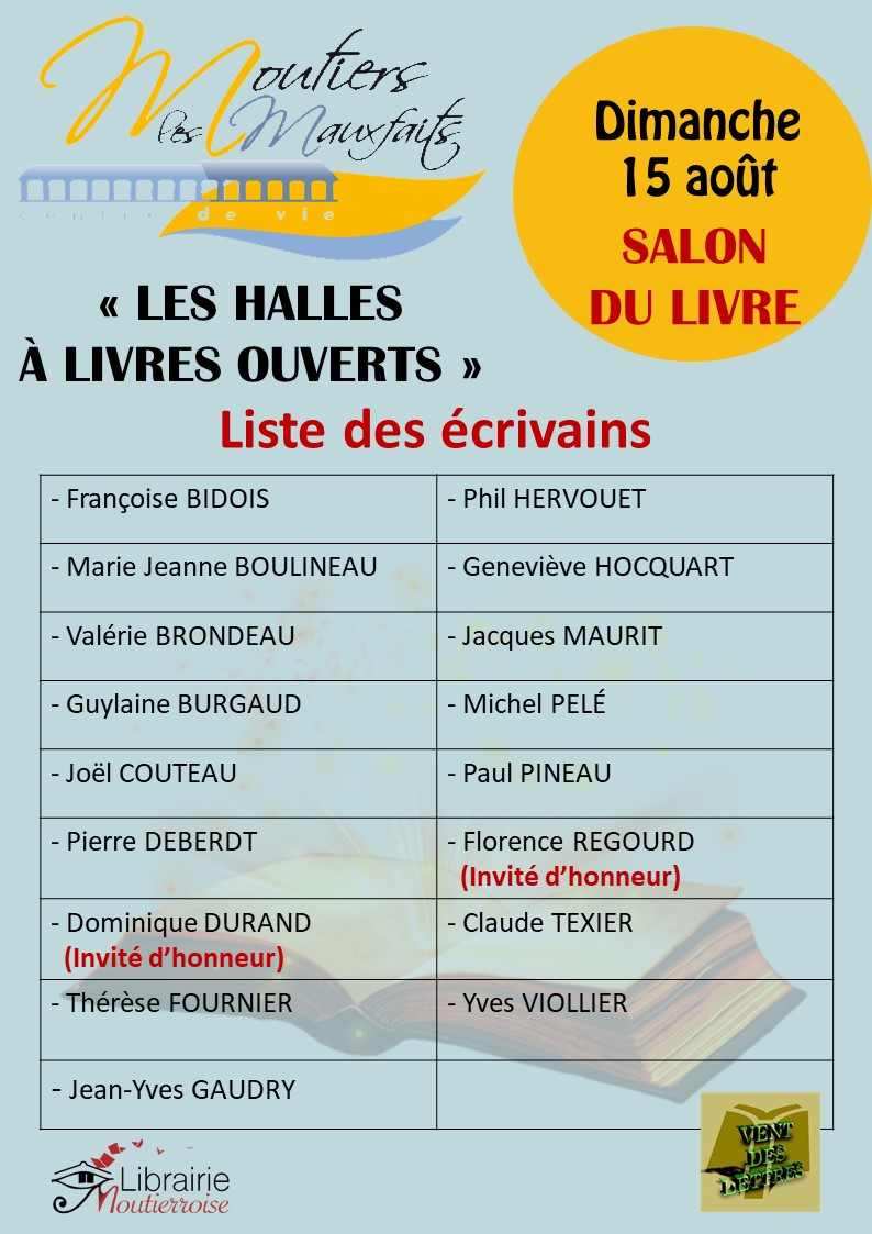 Après le succès de la 1ère édition des Halles à livres ouverts en 2020, 16 auteurs seront présents pour notre 2ème édition du 15 août 2021 de 10 H à 17 H sous les Halles.